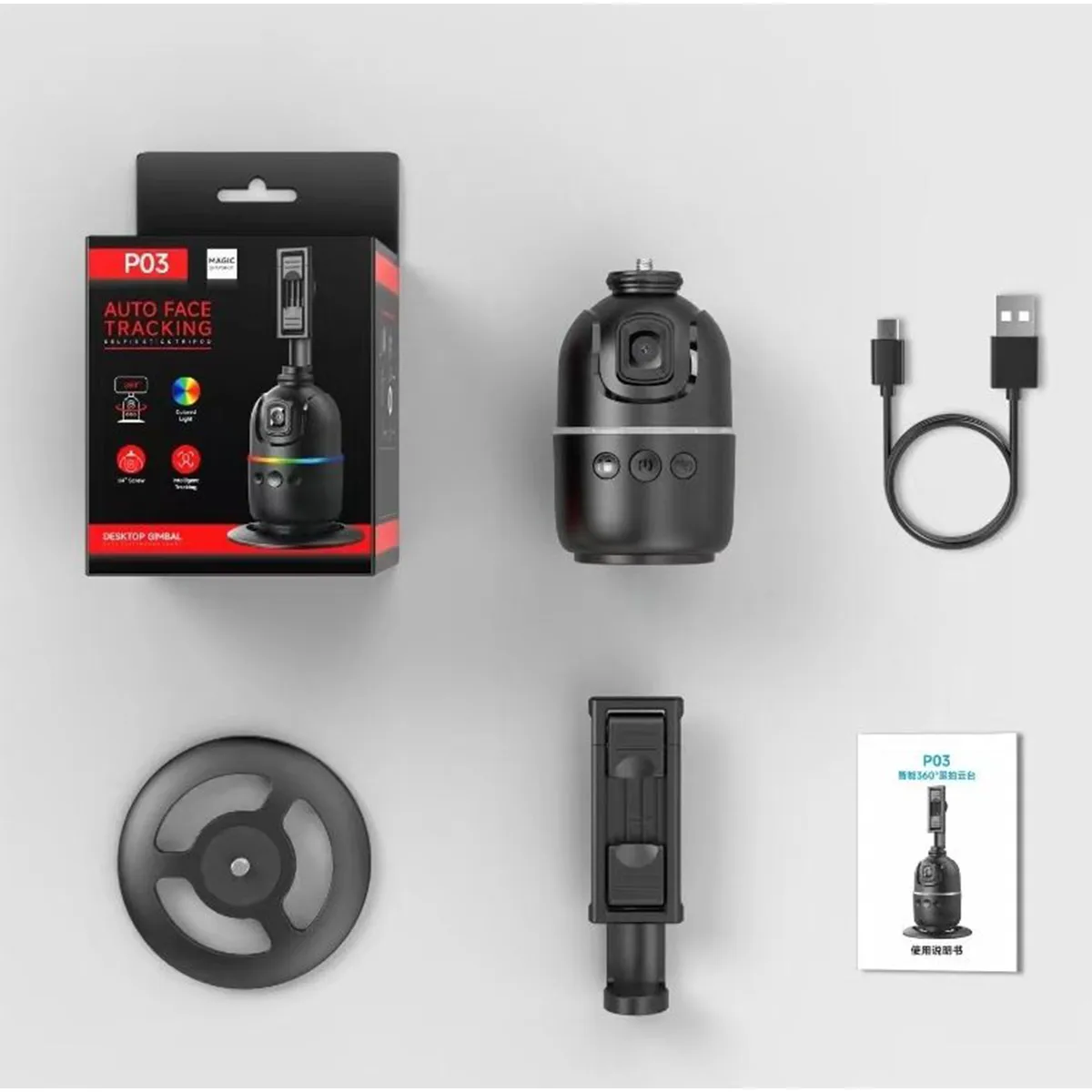 P03 Auto Face Tracking Desktop Gimbal – 360° Smart Gesture Control