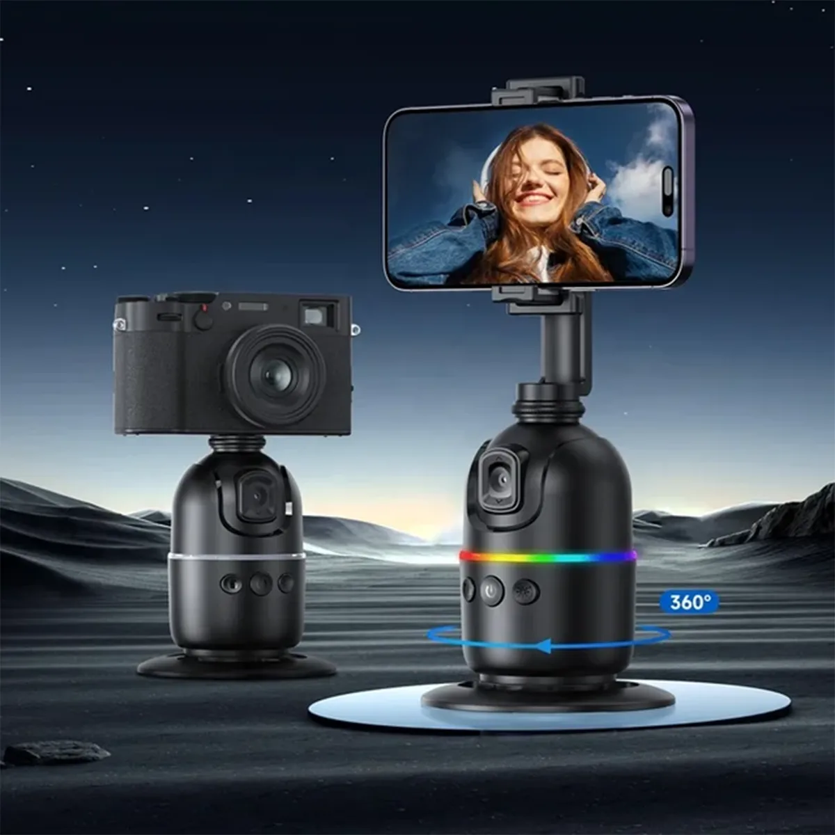 ✔ 360° Horizontal Rotation – Tracks your face automatically to keep you centered in every shot.
