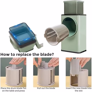 • Blades: 3 interchangeable (slicing, shredding, coarse grating)